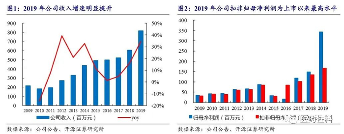 2019年公司实现营业收入8.19亿元(+34.71%),净利润3.42亿元(+131.75%),扣非后净利润1.67亿元(+23.39%),收入增速增速创出近年来新高,扣非后净利润达到上市以来最好水平。2019年公司业绩快速增长主要受益于:1)公司在管理层更换后销售能力和内部管理效率持续提升,对比剂等核心品种快速增长;2)公司将世和基因股权从长期股权投资转入以公允价值计量且其变动计入当期损益的金融资产,2019年确认投资收益1.75亿元。2020年1季度由于受到受新冠肺炎疫情影响,全国各地医院门诊量、检测量、手术量等均大幅下降,公司实现营业收入1.26亿元(-27.08%),净利润2678.46万元(-33.97%),扣非后净利润2781.91万元(-29.34%)。
