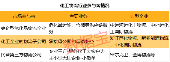 从行业格局来看,目前经营者包括大型央企、地方国企和第三方的中小民营企业,其中占主流的是数量众多的中小民营企业。央企、国企主要为化工行业附属的运输部门,由于危化品运输的风险大、激励机制短缺,使得民营企业非常活跃,但是其中具备资质、品牌、资金实力的较少,使得第三方未来洗牌的可能性非常大,行业份额有望集中到实力强大的企业手中。
