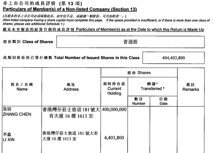而最近一份的周年申报表显示,中国云铜目前为两名自然持有人张宸和李鑫,分别占股99%和1%。两人地址现均显示为香港湾仔庄士敦道181号大有大厦。
