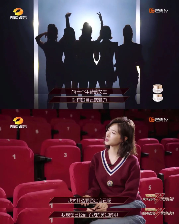 在第一期开头,节目组便开宗明义地抛出了这样一串文案,用“三十而励/立/骊”为30+的女性做了注脚。芒果系综艺一向善于价值观输出,《乘风破浪》总导演吴梦知在业内更是被誉为“文案大神”。某种程度上,观众也可以把《乘风破浪》当成一个中年职场女性的真人秀,所以让女演员讲述自己的演艺事业瓶颈或是生活经历、职业焦虑,都在节目的台本中,这会引起观众的共鸣,也一定程度上缓解了女性的年龄焦虑——因为女明星也逃不过这些。