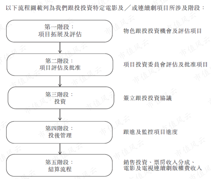 下图是耳东影业影视项目投资的全部流程,包括项目物色、项目评估、投资、投后管理等等,这些流程完全可以套在任何一家私募股权基金或者风投基金身上。