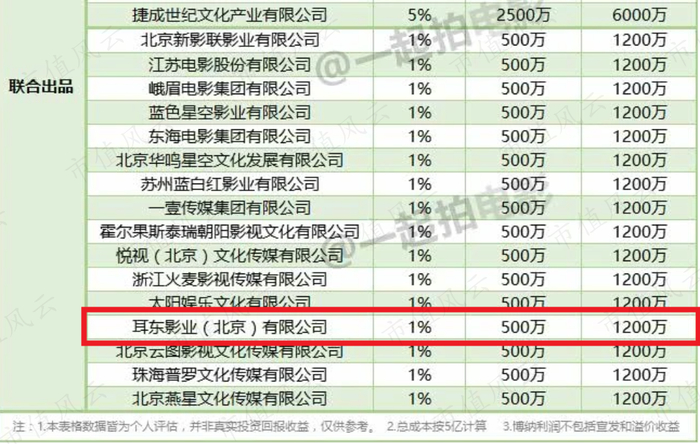 风云君认为,耳东影业其实相当于一家专门投资影视份额的基金,只负责投资、出售、套现。