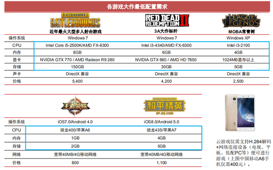 传统游戏大作对硬件要求对比