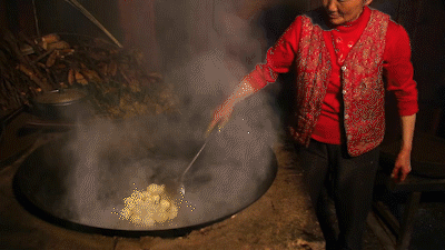 几分钟后,揭开锅盖,一股浓烈得焦香传来,土豆香气和米饭相融在一起。只见奶奶用锅铲一番,铺在底下那一层土豆被煎得焦黄,土豆被轻轻一压便碎了。