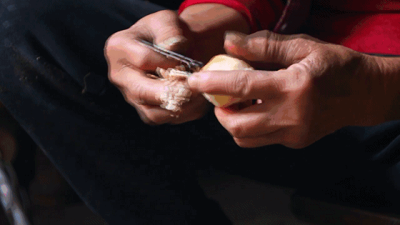 原来,老爷爷急着挖土豆是要用来做早饭呢。只见老奶奶飞快的把土豆上的皮刮掉洗净。