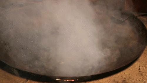 另一边在热锅上撒上油,待油冒出油香,再放上土豆翻炒,不一会每个土豆被煎得滋滋作响,待表面微微焦黄。