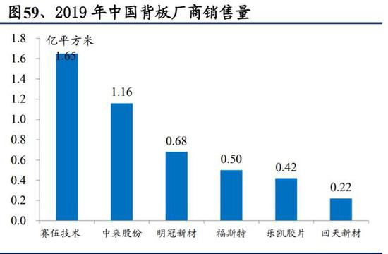 背板行业格局集中度一般,但有提升的趋势。类似于光伏产业链其他环节,背板环节也经历了国产替代的过程,国产厂商基本上在 2007-2010 年左右进入背板行业,并较快挤占了国外公司的份额。根据 TaiyangNews 发布《2019 光伏背板及封装材料调研报告》,2018 年赛伍保持全球背板市场份额第一,达到 23.8%,中来股份占 15.2%,前两家合计占据全球约 40%的份额,另外福斯特占 7.6%,乐凯胶片占 6.7%。根据 2019 年数据来看,市场集中度有进一步提升的趋势,赛伍和中来合计市占率已经提升至 45%-50%。