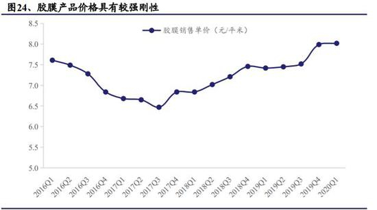 胶膜行业溢价空间较小,其成本几乎全由主要原材料-EVA/POE 树脂决定,龙头公司福斯特的整体毛利率也仅 20%,且是建立在福斯特的成本控制能力领先行业其他公司的基础上,可见价格已经较为刚性。