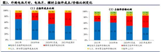 一体化组件生产方式与(一)中组件厂通过外购电池片进行组件加工的方式相比,辅材占组件价格的比例相同。