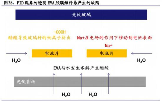 透明 EVA 胶膜技术成熟且成本低,满足封装材料透光、可粘接、耐紫外及高温等要求,但一方面,透明 EVA 会造成部分太阳能光线的损失,另一方面,产品透水率较高,组件内部易产生 PID 现象,导致组件功率衰减。