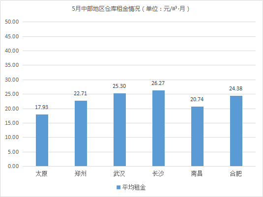 受仓储设施条件、地理位置等影响,太原、石家庄仓库租金水平仍较低,均低于20元/㎡·月。相较4月,太原仓库租金波动不大,市场相对稳定;石家庄受经济环境影响,租仓需求较少,部分仓库业主降租招商,导致当地仓库平均租金有所下降,降幅为2.91%。