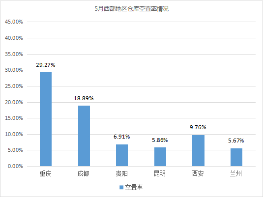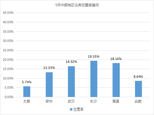 仓库空置率最低的城市为苏州、兰州、太原,均低于6%。相较4月,三个城市仓库空置率波动不大,市场稳定。