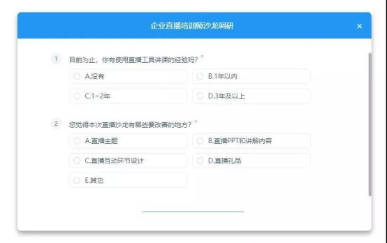 在直播结束后,可以给客户发放调查问卷和本次会议资料,持续跟进线索,进一步沟通需求。间接进行市场调研,了解客户对未来会议内容的想法。