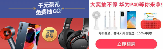 中原证券推出翻牌大抽奖活动。奖品是华为P40、小米电动牙刷、智能音箱视频会员卡等,且承诺100%中奖,绝无空奖!财信证券可抽华为手机、苹果AirPods、华住酒店180元、芒果TV会员卡等。中信建投“集齐5张神器卡抽奖”,奖品包括Macbook air、华为P40等等。