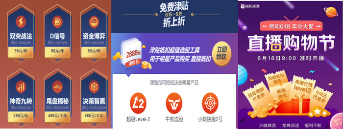 例如,平安证券推出2888津贴用于Level 2、牛熊选股、小赚快跑等购买;长江证券推出618代金券,高端资讯、投顾组合买就送。