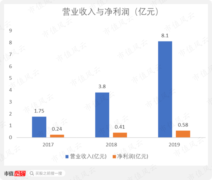 耳东影业的净利润从2017年的0.24亿元增长至2019年的0.58亿元,营业收入也从2017年的1.75亿元增长至2019年的8.1亿元。