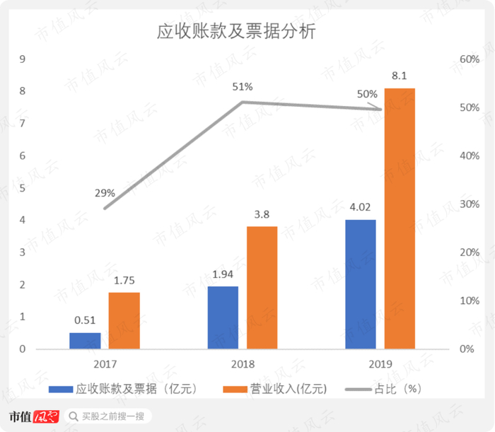 2019年,应收账款及票据占同期营收的比例为50%左右,不算低。大部分应收账款及票据的账龄在一年之内。