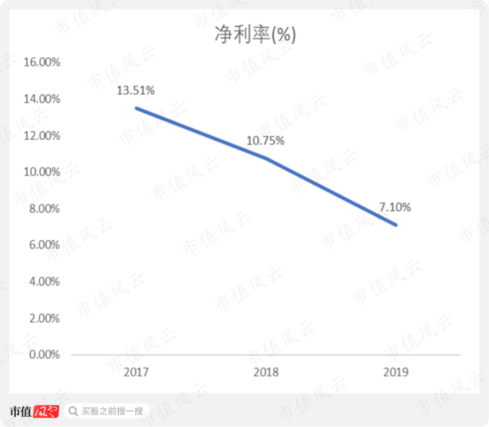 2017-2019年,耳东影业的净利率从13.51%下降至7.1%。