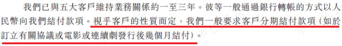 对这些客户,耳东影业一般会要求分期结付款项,因此,耳东影业会有一定规模的应收账款。