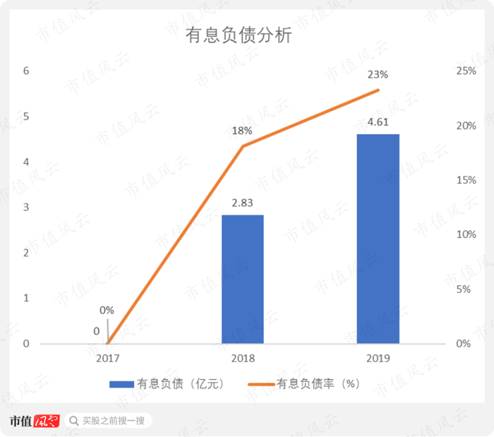 2017-2019年,有息负债从0增长到4.61亿元,有息负债率也从0增长至23%。说明耳东影业的财务杠杆水平有所提升,不过总体不高。