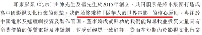 耳东影业在招股说明书中阐明了整个公司的定位:做世界级的华语电影(making Chinese films for the world)。