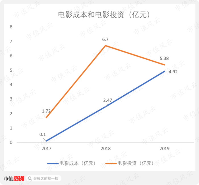 电影成本这几年则增长迅猛,2017年还只有0.1亿元,2019年就已经达到4.92亿元,与电影投资相差不大了,所以我们会看到,非影视份额交易的收入占营收的比重越来越高。