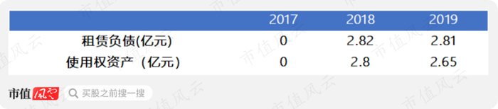 既然所有的租赁负债都要上表,原来公司租赁的物业,也要上表,放在资产一边。截至2019年年末,耳东影业的使用权资产为2.65亿元,使用权资产其实就是租赁的物业,对应地,租赁负债(包含短期和长期)在2019年为2.81亿元,两者相差不多。