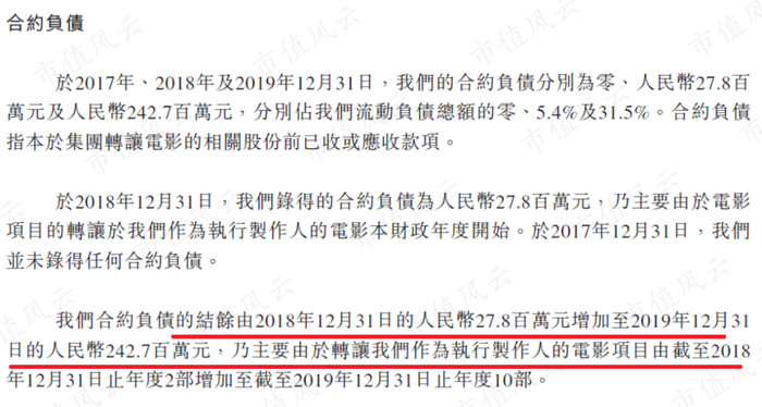 首先是合约负债。合约负债和预收款项之间的差别不大,耳东影业在出售影视份额之前,客户会提前打一部分款,这就是合约负债,显然这种负债不是有息负债。