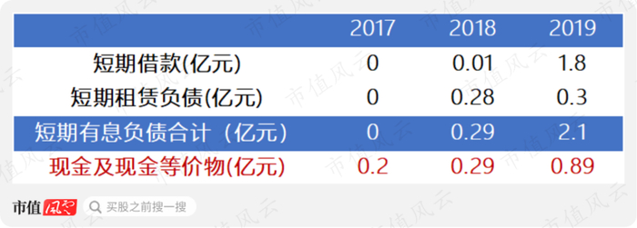 2019年,短期租赁负债和短期借款,加起来已经超过同期的现金及现金等价物。即使不考虑租赁负债的话,1.8亿元的短期借款还是要比账上的现金多,这还是在公司发行优先股进行筹资的情况下。