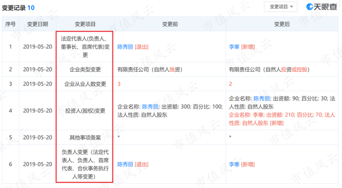后来不知什么原因,李寒也加入进来,成了公司股东,公司性质从自然人独资变成自然人投资或控股,并且实际控制人、法人代表、董事长全都变更为李寒。