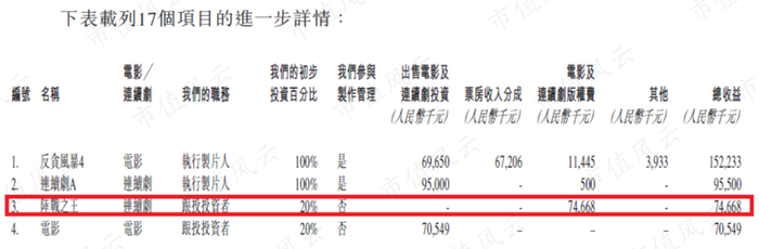 耳东影业的收入主要来自影视份额的买卖交易,先以跟投投资者的身份,购入电影或者电视剧的跟投权,然后溢价转让给客户。这种操作手法,让耳东影业看起来更像是一家以投资交易为主业的私募股权基金,而非电影公司。
