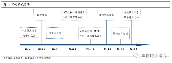 风华高科是一家专业从事高端新型元器件、电子材料、电子专用设备等电子信息基础产品的高新技术企业。公司致力于成为世界一流的电子元器件整合配套供应商及解决方案提供商。公司以MLCC起家,目前主营产品包括以容阻感为代表的九大产品系列,MLCC是公司最重要的产品。公司产品广泛应用于消费电子、通讯、计算机及智能终端、汽车电子、电力及工业控制、军工及医疗等领域。深耕MLCC三十余年,公司是国内唯一能提供01005~2220以上全尺寸的MLCC的厂商。