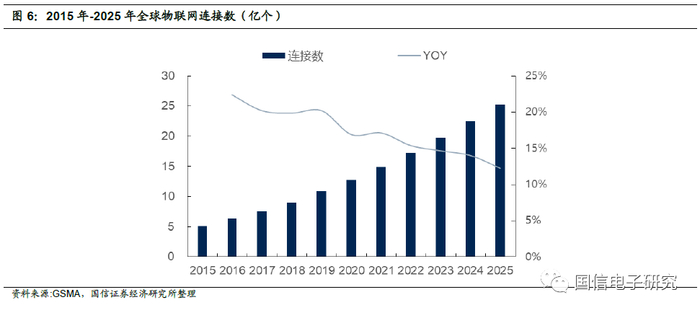 5G时代将有海量物联网终端接入。物联网是将各种信息传感设备与互联网结合起来而形成的一个巨大网络,可以实现在任何时间、任何地点,人、机、物的互联互通,对速率、时延要求高,而5G技术能满足IoT对于网速、稳定性等方面的要求,5G时代将有海量物联网终端接入,预计到2025年全球物联网设备联网数量将达到252亿,2020年至2025年间CAGR为14.66%。MLCC作为物联网设备中必不可少的电子元件,将迎来增长良机。