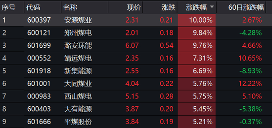 值得注意的是,同为低估值的周期行业——煤炭板块也集体大涨,安源煤业等多股涨停。