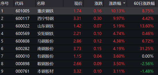 6月18日,钢铁板块再度大涨,重庆钢铁三连板,南钢股份在连续涨停后再涨逾4%。