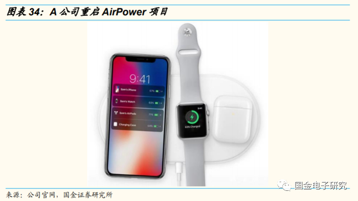 ◾ A公司原计划于2018年推出AirPower,但由于技术原因推迟发布,不过目前正重启AirPower项目,我们认为未来伴随智能 渗透率逐步提升,未来有望引爆无线充电需求。考虑公司长期坚持大客户战略,未来有望深度受益AirPower推出。