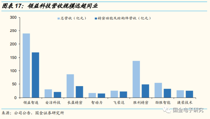 ◾ 公司规模优势突出,营业收入远超同业。1)领益科技细分产品料号超1.6万个,品类丰富,能满足客户对不同型号产品的需求。2) 2019年领益智造营收达239亿元,其中精密功能及结构件营收达169亿元,销量达390亿件/1.16亿套,远超同业。营收规模更大的企业在与供应商合作时议价能力更强,一定程度上降低原材料采购成本,提高产品成本优势。
