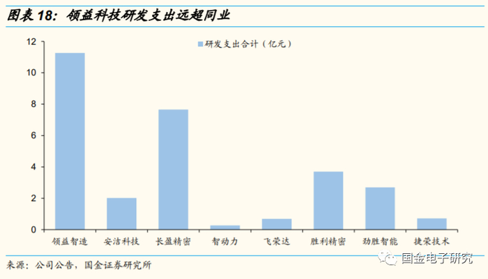 ◾ 自成立以来公司重视对研发的投入,2019年领益智造研发支出达11亿元,远超同业。经过十余年积累,子公司领略数控掌握了工业机器人全面的核心技术,包括关节减速机,直驱马达,伺服驱动器,控制器硬件和软件等,为公司提供了强劲的技术支持。