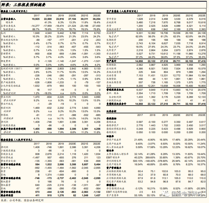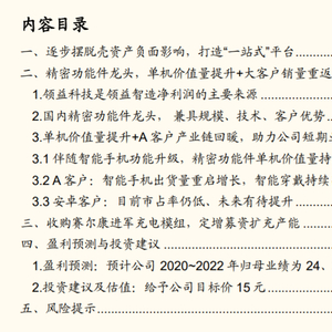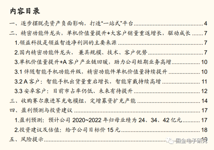 ◾ 考虑公司加速整合、积极布局模组业务。预计公司2020~2022年归母业绩为24、34、42亿元。给予公司2021年30倍PE估值,对应目标价15元,给予买入评级。