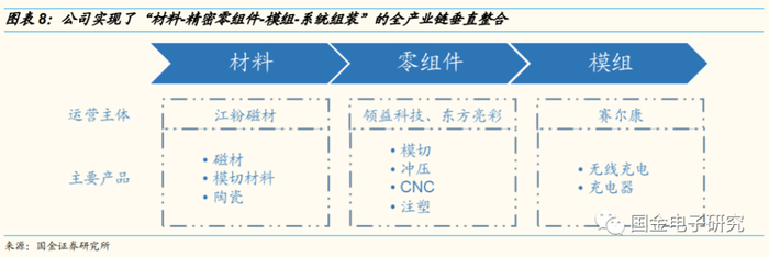 ◾ 2019年8月底领益智造成功收购赛尔康,进军充电器业务,预计未来有望受益AirPower推出。并且并购使得公司具备了SMT、FATP的能力,完成了从材料到精密零组件到模组再到系统组装的全产业链整合,得以更好地服务客户。