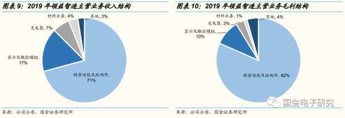 ◾ 精密功能件及结构件是领益智造的主要收入、利润来源,2019年精密功能及结构件业务营收占比达71%、毛利占比达82%,精密功能及结构件毛利率达26%,盈利能力高于其他业务。