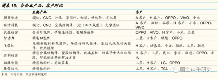 ◾ 公司客户资源突出,A客户贡献的营收占比达50%。1)精密功能件是定制化产品,大型消费电子企业对供应商审核较为苛刻,审核评估涵盖研发能力、产品质量、生产规模、交货周期等因素。一般精密功能件企业通过合格供应商资质认定,将与客户保持稳定合作关系。2)领益科技2008年进入A客户供应链,2014年进入VIVO供应链,2015年进入OPPO供应链,2016年进入H客户供应链,2016年公司应用于A客户、H客户、OPPO 、VIVO 产品销售收入占营收比例达99%,其中应用于A客户产品销售收入占营收比例达50%。