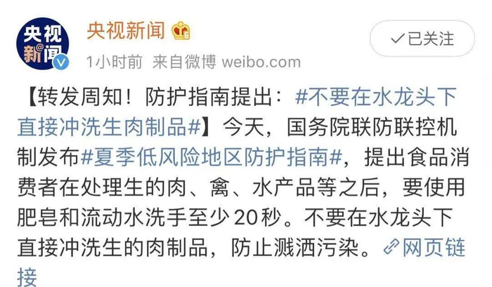 今天,一条“不要在水龙头下直接冲洗生肉制品”的防疫建议,让很多人傻了眼: