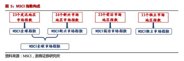 >>富时罗素指数体系完备,对全球股票覆盖率较高,MSCI市场占有率相对较高