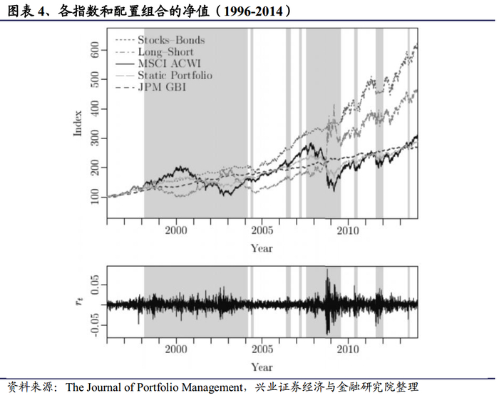 2、市场状态的切换对传统的战略资产配置(SAA)构成了巨大的挑战,在面对不断变化的投资机会时,投资者需要随着新信息的到来调整投资组合权重;战术资产配置(TAA)虽然更加灵活,但是通常需要对资产的收益和波动进行预测。