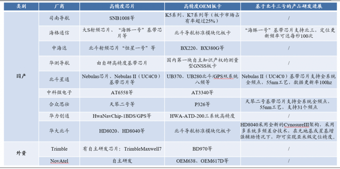 国内主流北斗相关企业均已经实现了芯片和板卡的自主生产。