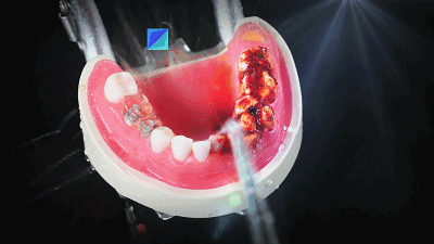 平时去洗牙,牙医会用一支“水枪”,利用高频脉冲的水流冲击力清除掉牙齿内部残留的脏东西、顽固的牙结石等。