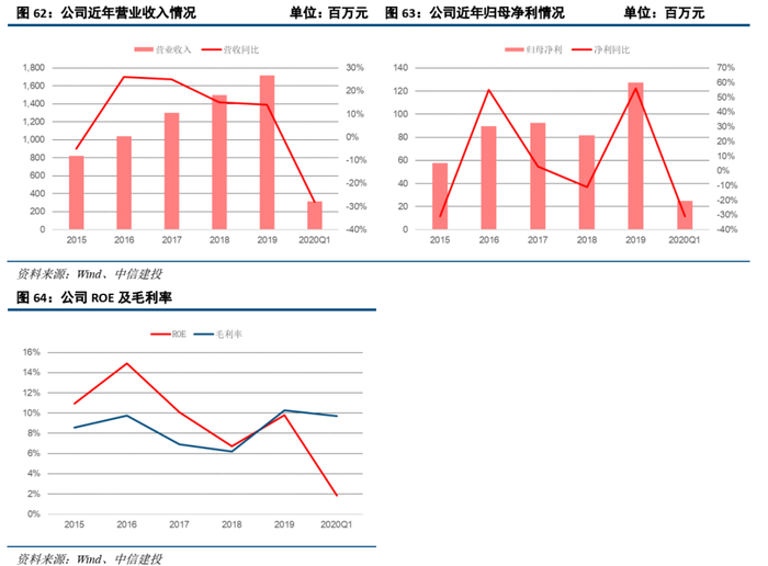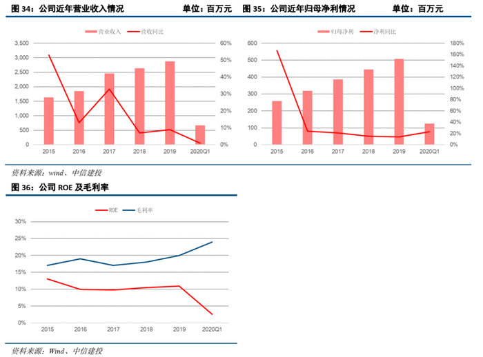 2019年公司实现营业收入28.70亿元,同比增长9.06%;归母净利5.07亿元,同比增长14.00%;扣非后归母净利4.90亿元,同比增长14.17%。公司在2020年一季度实现营业收入6.68亿元,同比增长1.07%;归母净利1.24亿元,同比增长22.53%;扣非后归母净利1.24亿元,同比增长28.87%。公司毛利率自2017年以来稳步上升,2019年达到20.42%。