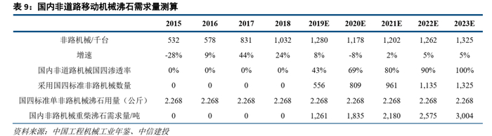 截至2018年,我国非道路移动机械年销量超过100万辆,沸石用量以每辆车2.52kg估算(工程机械单机平均排量是轿车的4-8倍,这里取中值6倍,非道路移动机械平均排量以10.8升计,SCR催化剂整体体积以排量1.4倍计,沸石用量以每升催化剂150g计)。综合计算得到,中国非路机械2019年沸石需求量约1261吨,至2023年将增长至3004吨,年均增速24%,国内由于非路机械国四标准的实施将直接产生3004吨的纯增量。