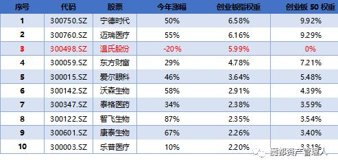图:创业板50指数不包含温氏股份,且龙头权重更高